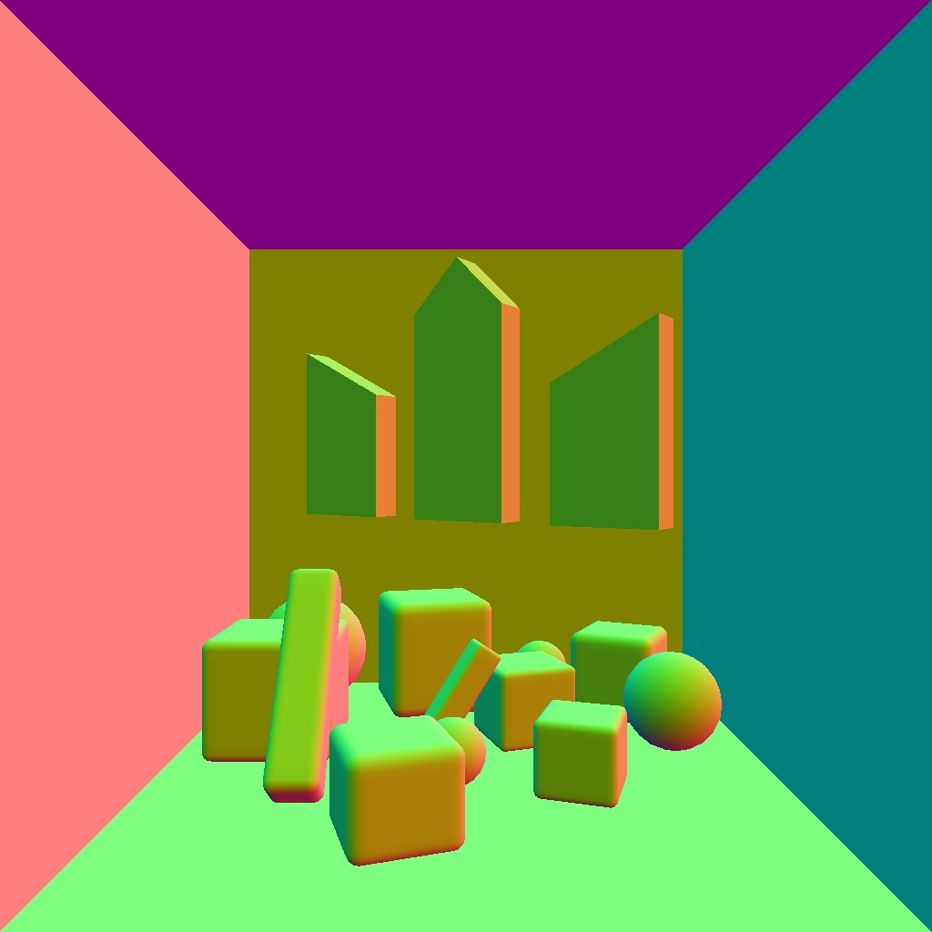 Если всё было сделано правильно, то g-буфер должен содержать в себе следующую информацию: