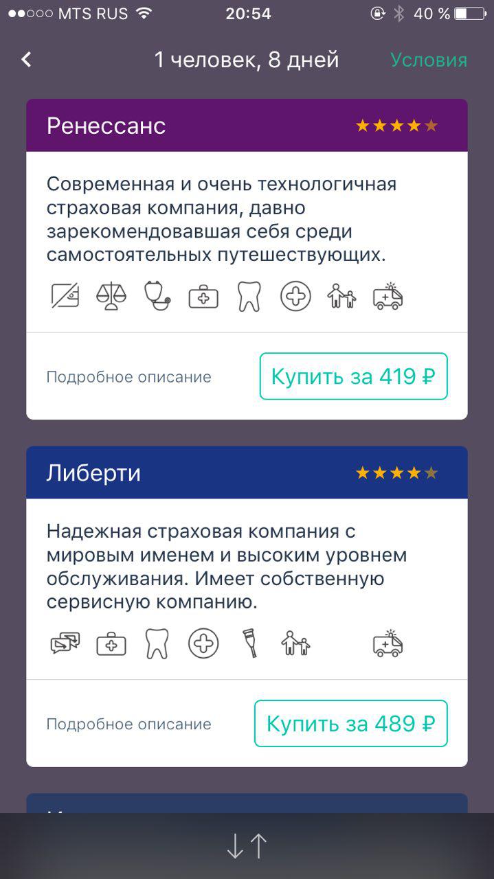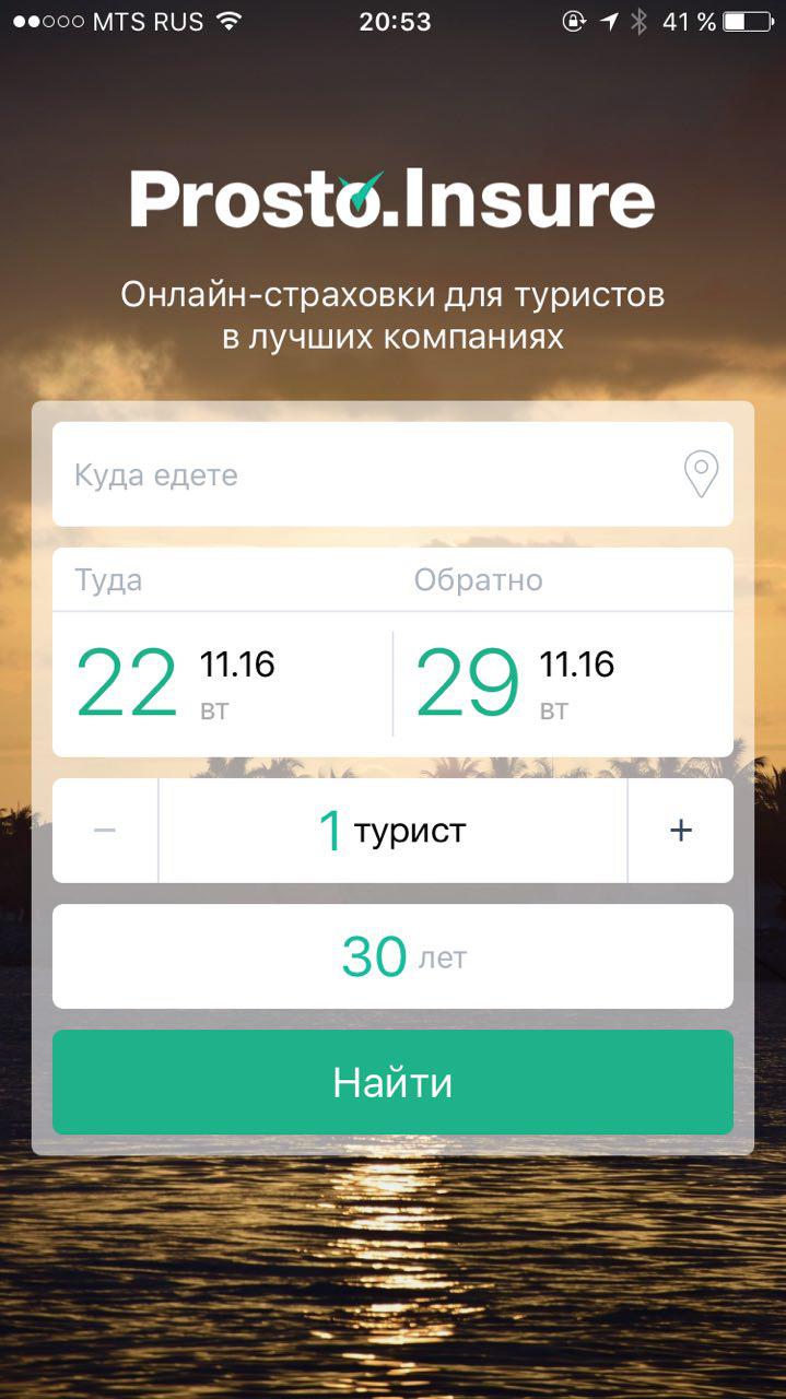 Приложение позволяет указать возраст путешественников, страны, которые они собираются посетить, после чего предлагает сравнить цены на страховой полис от различных страховых компаний.