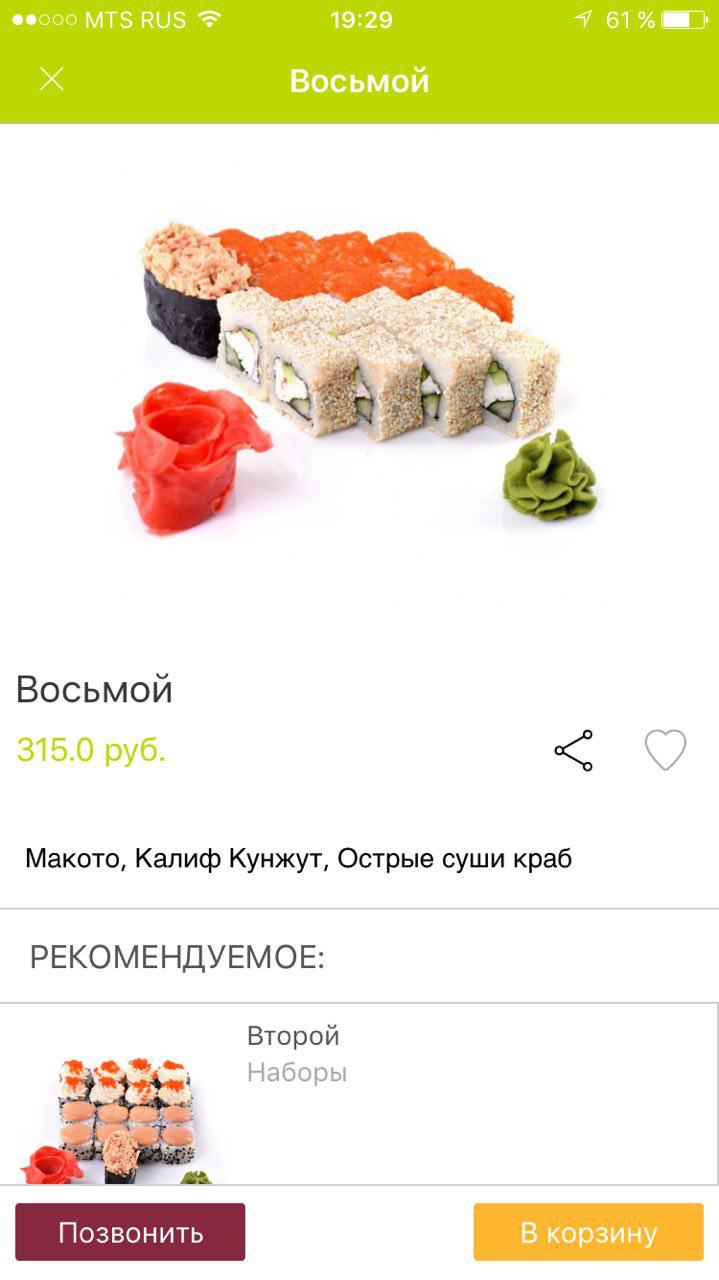 Кроме прочего, приложение имеет интеграцию с соц. сетями, так что вы можете не только заказать себе унаги маки, но и потом рассказать друзьям как это было вкусно! =)